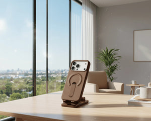 Crafted from soft premium leather, it offers a comfortable grip and a sleek look. The built-in ring kickstand lets you enjoy hands-free viewing anytime. MagSafe compatibility ensures fast and secure wireless charging without removing the case.